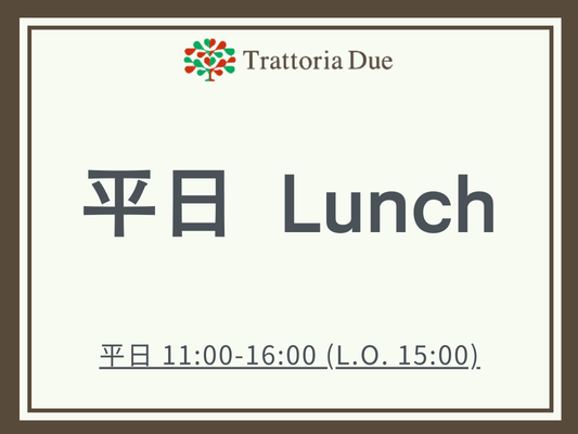 - ランチ [平日]11:00-16:00[土日祝]11:00-14:00
